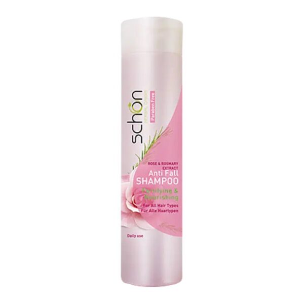 شامپو ضد ریزش و تقویتکننده حاوی عصاره رز و رزماری مناسب انواع مو ۴۰۰ میل شون (Schon)