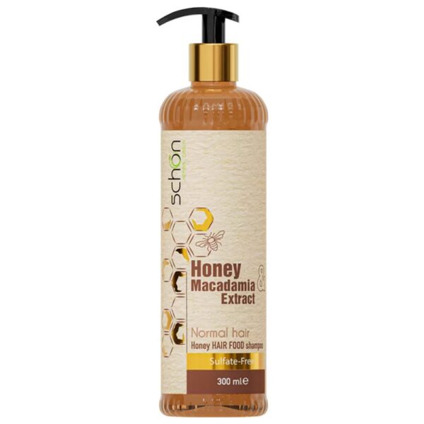 شامپو بدون سولفات عسل و ماکادمیا مناسب موهای معمولی، رنگشده و کراتینه ۳۰۰ میل شون (Schon)