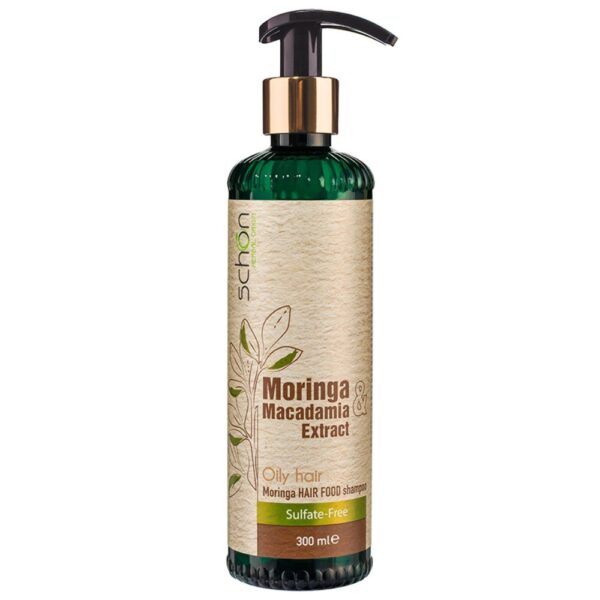 شامپو بدون سولفات مغذی مورینگا و ماکادمیا مناسب موهای چرب، رنگشده و کراتینه ۳۰۰ میل شون (Schon)