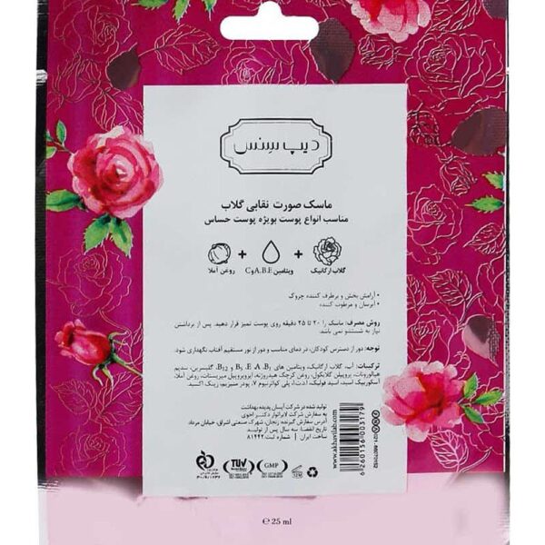 ماسک صورت نقابی گلاب مناسب انواع پوست ۲۵ میل دیپ سنس (DEEP SENSE)