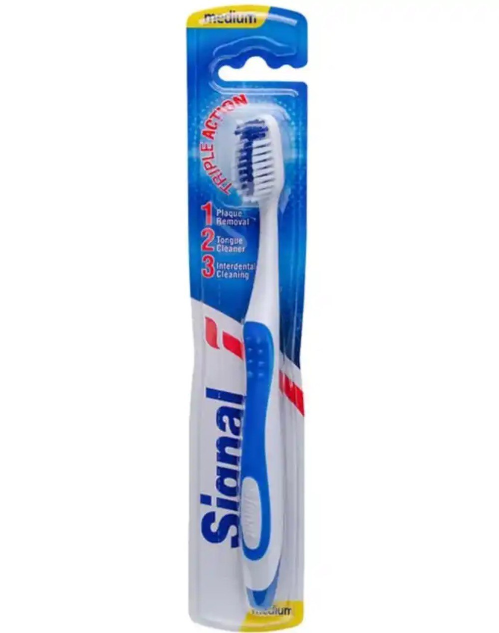 مسواک Triple Action سیگنال با برسهای متوسط و طراحی خاص خود، انتخابی کاربردی برای مراقبت روزانه از دندانها و لثههاست. این مسواک با داشتن عملکرد سهگانه، نه تنها به پاکسازی دقیق دندانها کمک میکند، بلکه زبان و فضاهای بین دندانی را نیز تمیز مینماید. طراحی موجی شکل برسها و دسته ارگونومیک، استفاده آسان و دسترسی کامل به تمامی نقاط دهان را امکانپذیر میسازد.